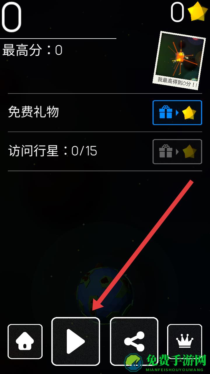 3、游戏结束后,需要点击界面底部中间的【播放】按钮,可重新开始挑战,尝试突破更高分数。