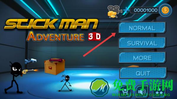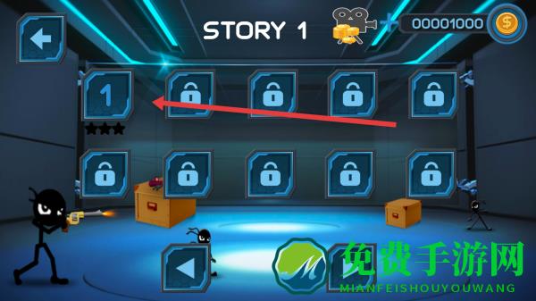 1、在主界面,选【NORMAL】模式,进入“STORY1”,点击关卡“1”,开启火柴人3D冒险之旅。