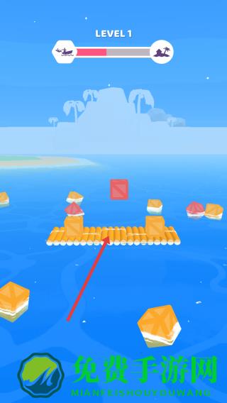 2、障碍躲避:漂流中避开红色方块等障碍物,收集漂浮物(如彩色道具)。