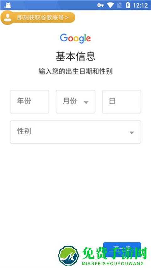 8、填写出生日期和性别,这里要注意,我们一定要选择18岁以上的年龄,成年即可,填好点下一步;