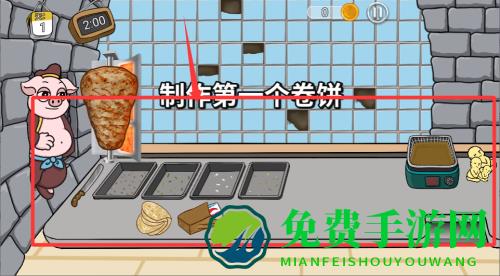 1、启动游戏后先熟悉操作界面,根据顾客订单选择合适的食材和调料,按照步骤有序制作卷饼,确保每位顾客满意。