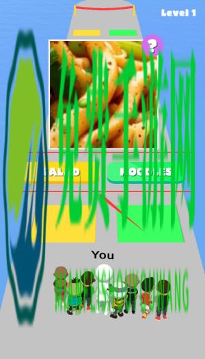 2、选择绿色noodles按钮,完成第一关食物选择。