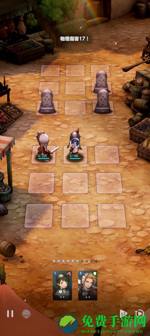 战斗方面采用遇敌式触发,进入战斗后最多能派出五名成员上场。战斗地图采用九宫格式的小型地图,我们可以将我方成员随意放置在九宫格的任意位置上。战斗模式是回合制模式,只要拉动底下的角色头像,就可以自由调整我方角色的行动顺序,我方所有角色攻击之后,才会转为敌方攻击回合。角色会优先攻击跟自己同一列最前方的敌人,打倒敌人后才会攻击其他列的敌人。我们也可以自由更换角色位置,更换优先攻击目标,远距离攻击的角色则是会优先攻击同一列最后方的敌人。