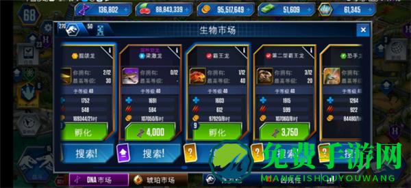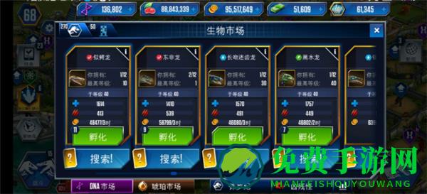 1、DNA:购买、进化恐龙的资源。玩家可通过完成指定任务、获取卡包、出售已有恐龙等方式获取恐龙DNA。