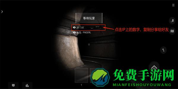 在等待玩家界面,下面有一段IP数字,复制发给好友;