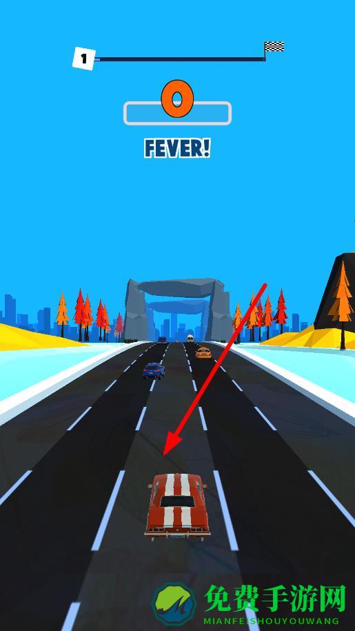1、从车库选初始跑车,熟悉左右滑动控制车辆移动的操作,按引导在直道完成短距离驾驶,躲避基础路障,开启初始关卡挑战积累经验。