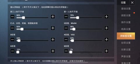 注意:因为每个玩家的手机以及操作方法不同,小编建议修改完灵敏度之后去训练场(训练场进入方法>>)试试,在进行一次微调,改到适合自己。