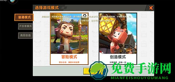 2、在首页点击开始游戏,创建一个新的世界选择冒险模式进入到游戏之中;