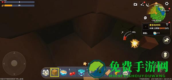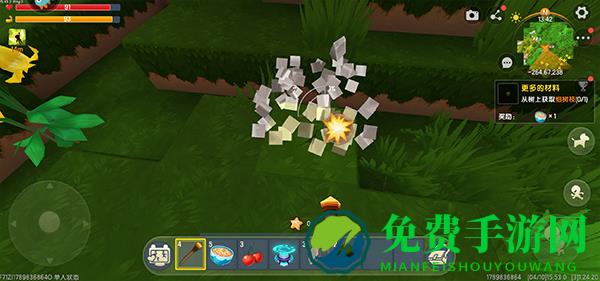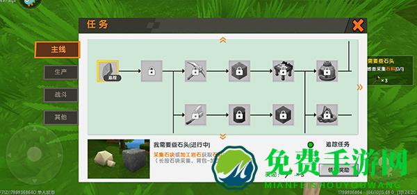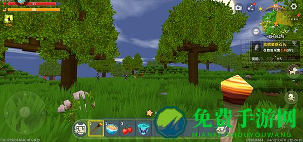 3、进入游戏之后,右上角有任务提示,根据任务提示收集需要的材料;