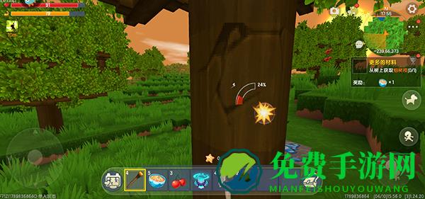 7、从树上获取细树枝,完成这个任务需要先来到树木旁边,通过砍树获取相应的细树枝;