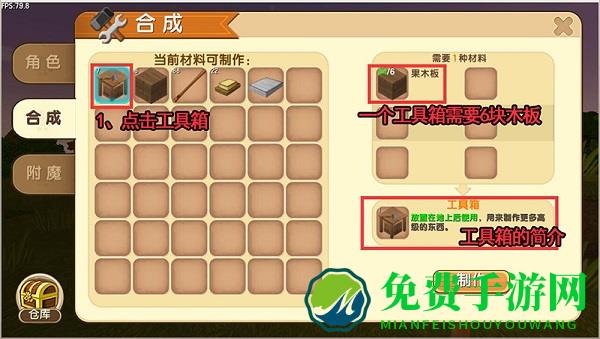 加工出木板后在合成界面就可以制作工具箱了。