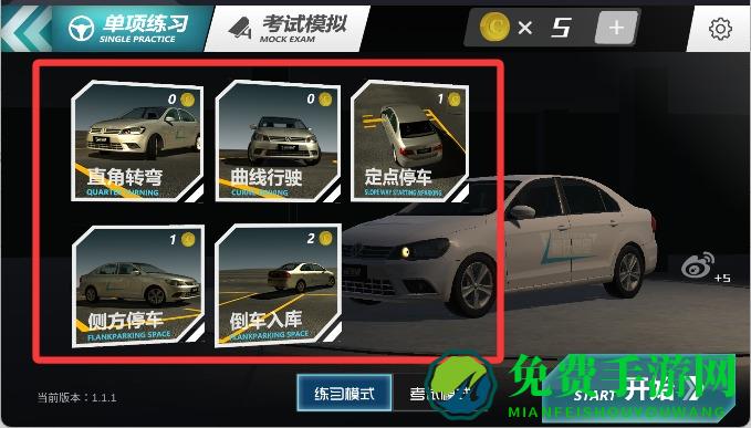 1、选择练习或考试模式后,先进行单项练习,如定点停车、直角转弯,通过后解锁下一项目,逐步掌握要领。