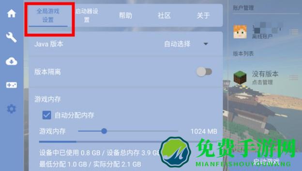 1、在启动器中可以进行游戏和系统方面的设置,选择我的世界使用的java版本