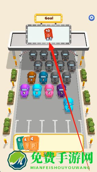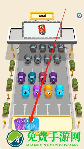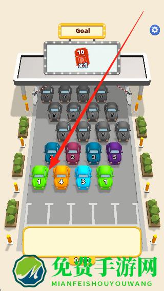 1、进入游戏场景,查看提供的车辆,了解合并规则和停车区域位置,准备合并首辆车辆并尝试停放。