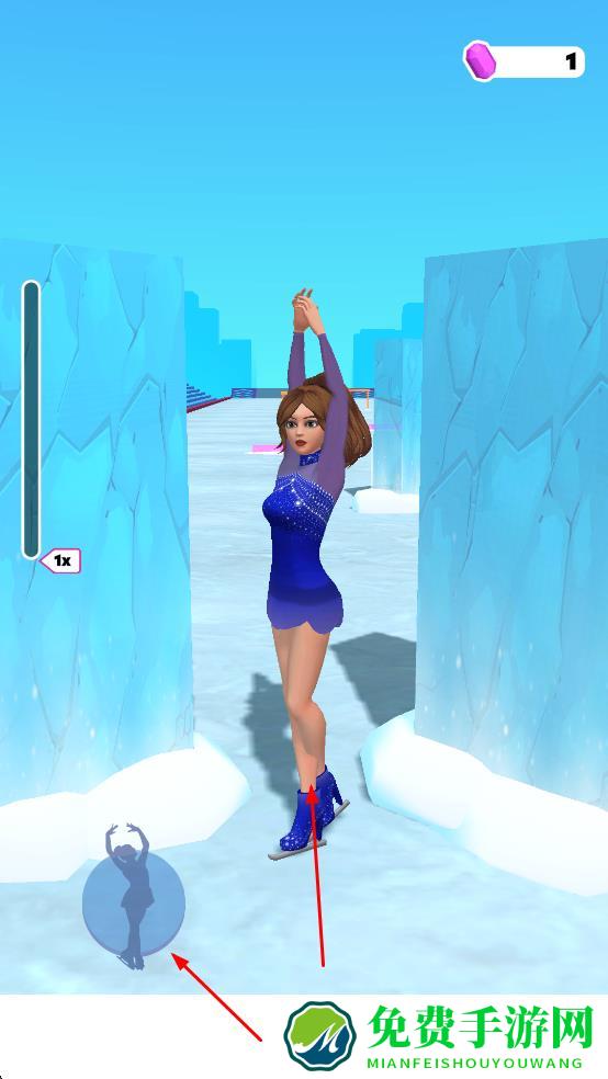 1、操控滑冰角色在冰场场景中移动,角色可前后左右移动,这是开启游戏的关键操作。