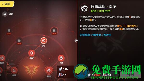 1、长矛也是偏向于辅助方面的技能,但是要注意如果敌人落地就会失去标记效果