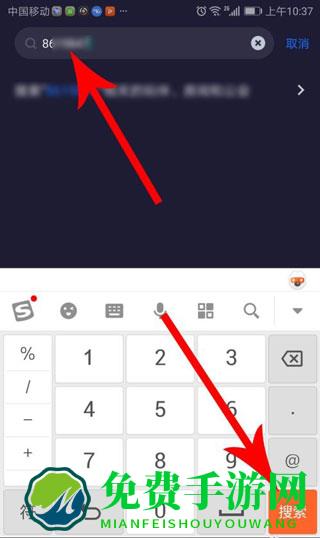 3、在搜索框内输入对方ID,然后点击“搜索”;