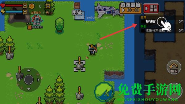 3、全程跟随右侧任务列表推进,挖铁矿、处理新任务时,善用界面指引切换操作,逐步解锁地图、提升角色生存与采集能力。