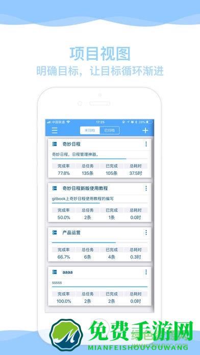 奇妙日程app是一款非常实用的日程管理工具,它不仅界面美观,功能也很全面。用户可以方便地记录和管理日常任务、会议和重要事项,同时能够设置提醒,确保不遗漏任何重要的日程。这样一来,可以有效提高个人的时间管理能力和工作效率。欢迎网友们来到免费手游网下载。