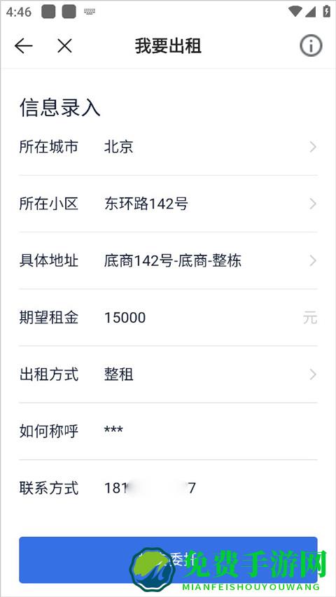 3、在此填入信息,包括所在城市、所在小区以及小区的具体地址,手动输入期望的租金、出租的方式和对方称呼你的名字,最后便是联系方式。