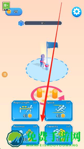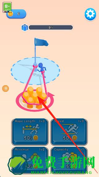 1、进入挑战场景,了解收集绳索和控制角色的基础操作,查看首个关卡的布局,准备开始体验。