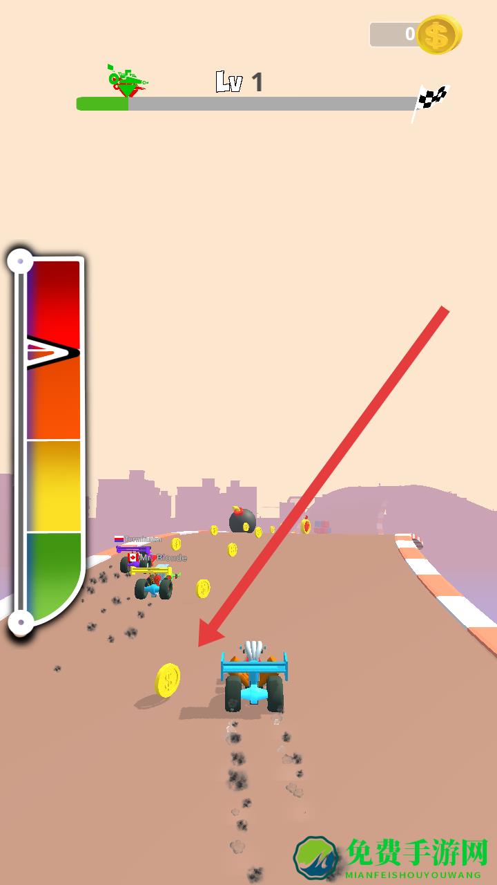 3、需要留意赛道上的炸弹障碍,通过左右滑动屏幕来进行及时的躲避,避免碰撞以确保安全前行。