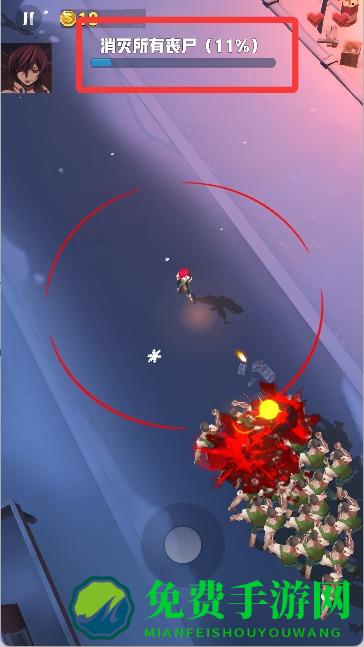 2、我们需要移动角色,角色会自动攻击范围内的僵尸。