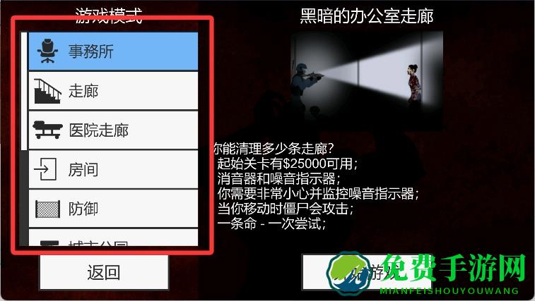 3、通过消灭僵尸获得金币奖励,用于解锁更高火力的武器装备,并强化已有枪械的射速与弹容量,提升持久作战能力。