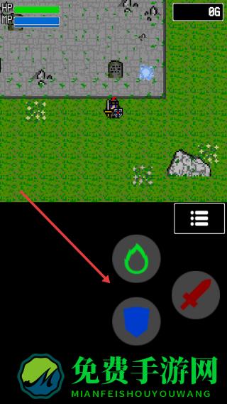 2、战斗时,点下方技能键,水滴回蓝、盾牌减伤、剑攻击,遇敌人,先用剑输出,残血开盾+水滴续航。