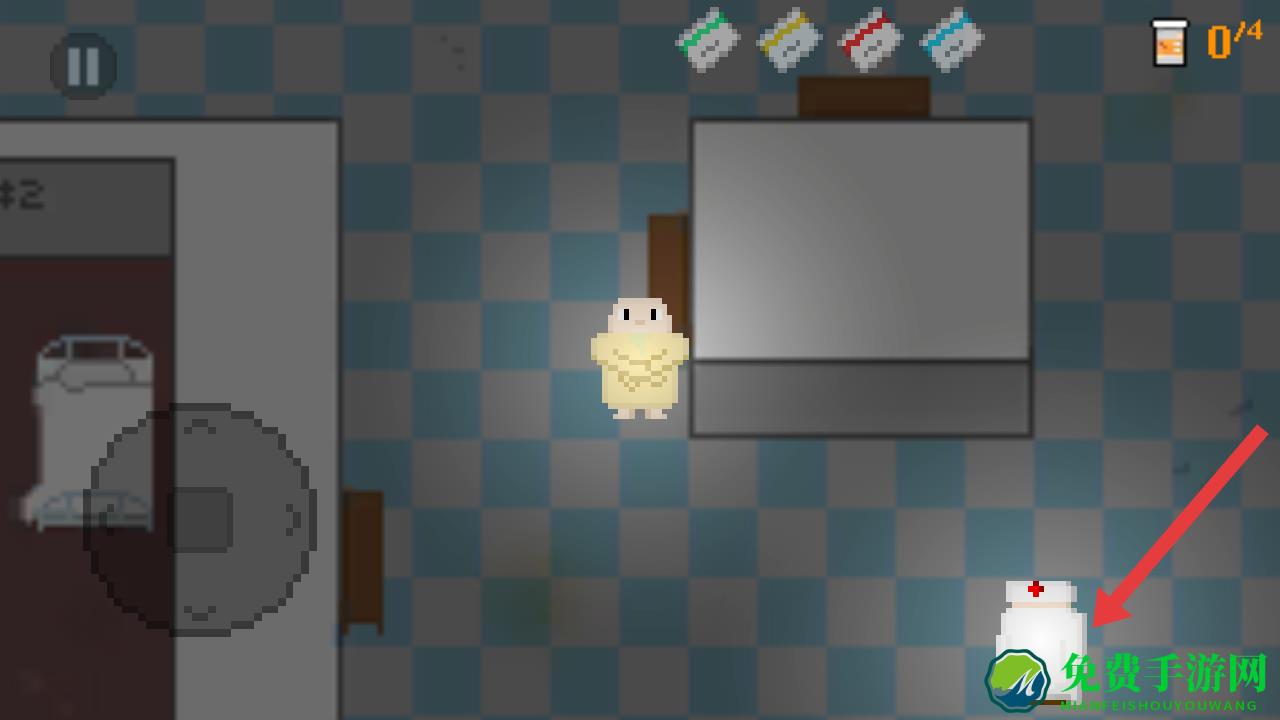 3、在进行探索周围的时候,发现了红色的药盒在隔壁的病房,需要寻找去隔壁病房的方法。