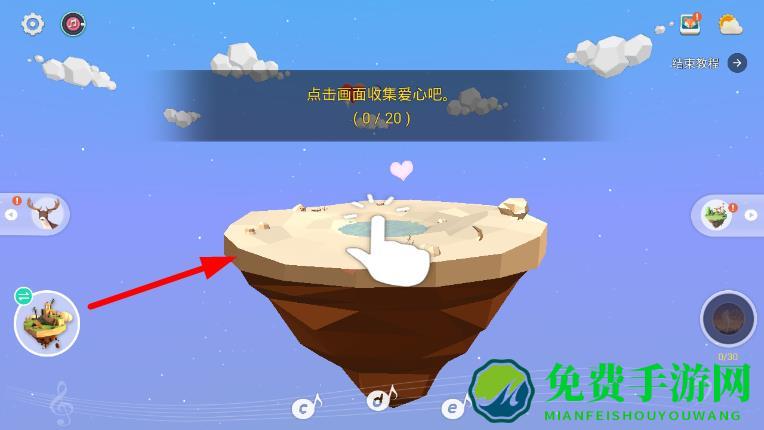 1、进入游戏后来到初始岛屿,点击屏幕任意位置收集爱心,熟悉收集节奏与基础操作,为后续装饰积累资源。