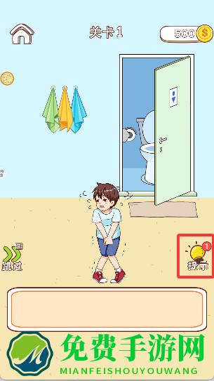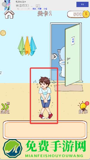3、进入游戏后,帮助小男孩上厕所,完成关卡。