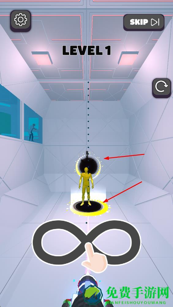 1、绘制∞符号连接上下传送门,使角色通过传送完成关卡,开启空间操作体验。