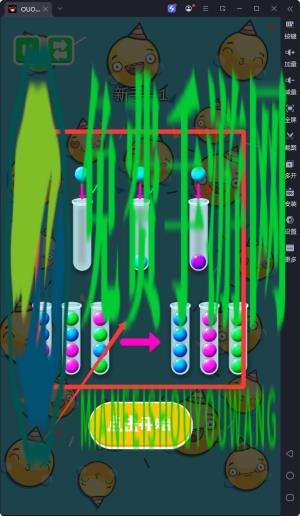 2、玩家点击管子移动顶部的球到其他管子中,通过合理的移动来达到将相同颜色表情符号集中在同一试管的目的。