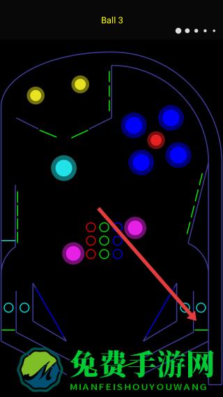 2、游戏过程中,点击屏幕对应位置,弹出铁球进入弹珠台轨道,通过碰撞彩色圆球获取分数,探索轨道布局。