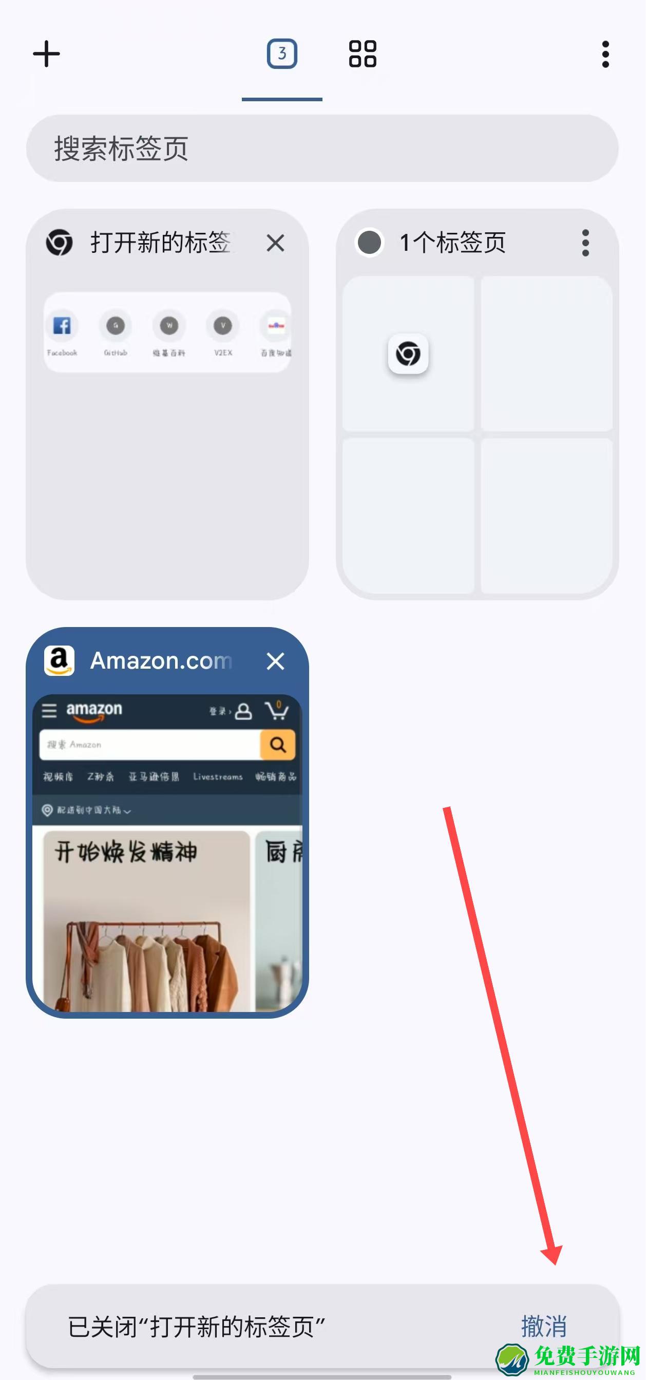 1、打开浏览器,若误关了打开新的标签页,看到页面下方已关闭打开新的标签页提示,可点击撤销,恢复该标签页。