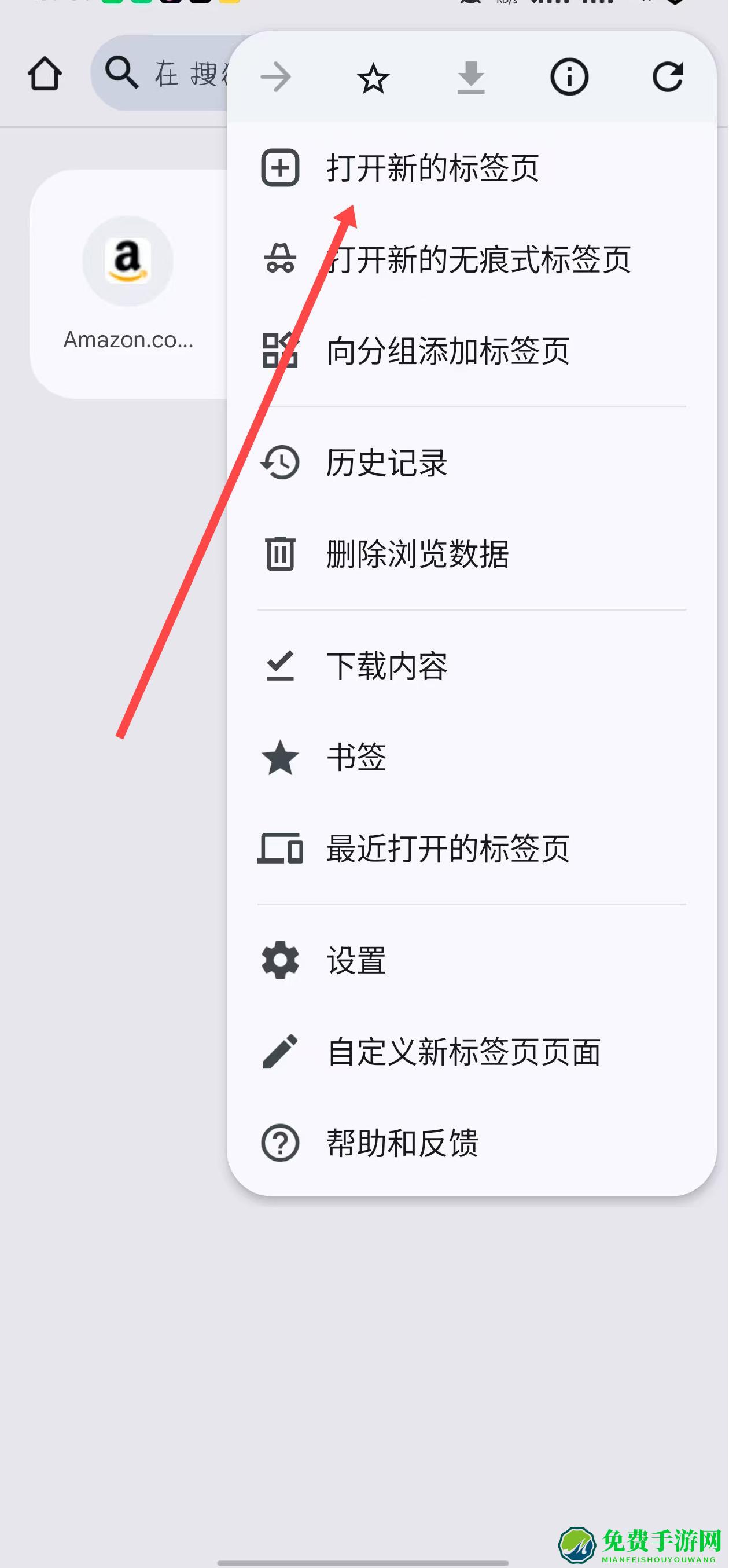 2、若要打开新标签页,点击浏览器菜单,在弹出的选项中,选择打开新的标签页,即可开启一个新的标签页进行浏览。