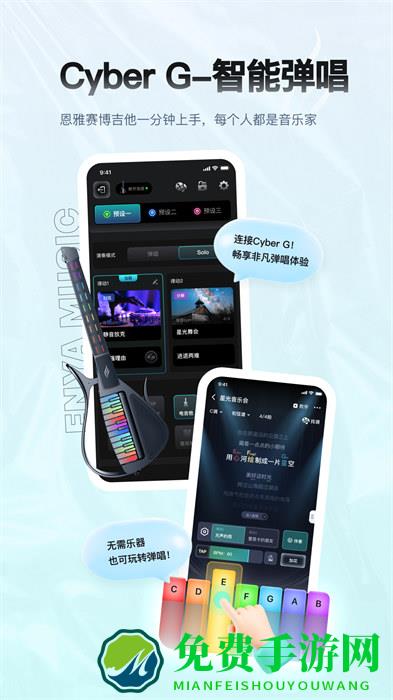 ENYAMUSIC是款创新性智能综合音乐产品,提供了智能互联、海量曲谱、实用工具、乐圈社交等功能,轻松上手,满足广大音乐用户的需求,我们的理念是一切为音乐服务,希望用创新和科技给大家带来更便捷、更快乐的音乐创作模式,和更多智能化乐器产品及周边服务,为大家创造更多的惊喜和感动。让我们一起在这里畅玩音乐,享尽无限的音乐激情。