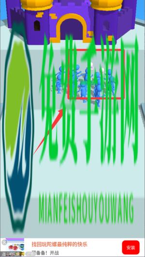 1、开始游戏后,控制小人向前移动,通过左右滑动屏幕来避开障碍物和敌人,遇到白色小人时,主动撞击将其转化为队友。