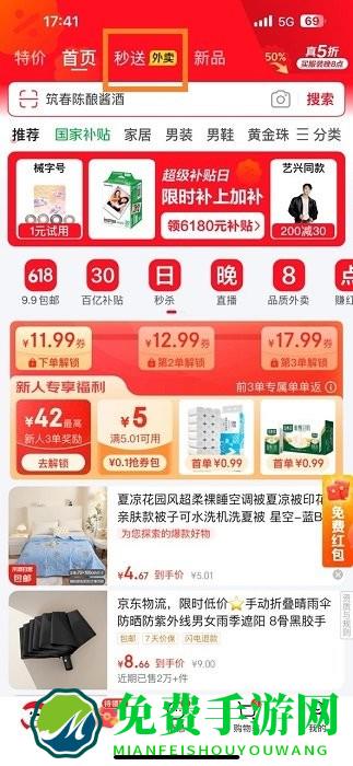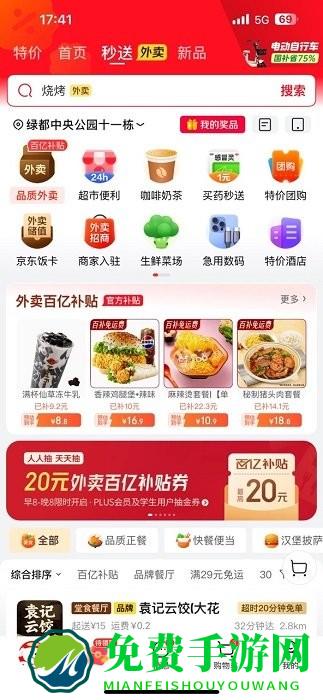 京东外卖平台app就是融合在京东app里面的,我们打开京东在首页可以看到有一个秒送的功能,点进去就可以看到外卖界面了,不管是零食小吃还是奶茶,还是商超都是包含的,并且价格还便宜。