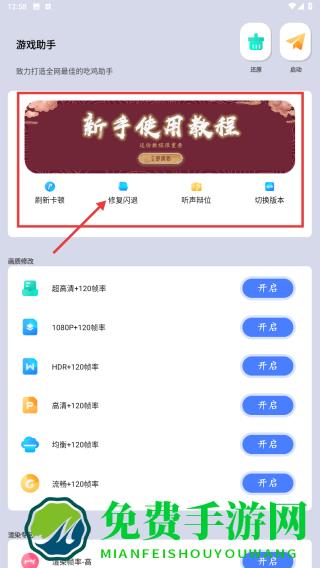 1、进入游戏助手,查看新手使用教程,点击修复闪退等功能,解决游戏运行基础问题,保障启动顺畅。