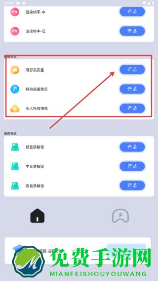 3、找到画质修改区,点击开启阴影类质量等功能,优化游戏画面表现,提升视觉体验。