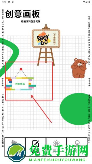 2、切换到创意画板页,点击我的作品入口,可查看过往绘画创作,继续拓展创意涂色无限可能。