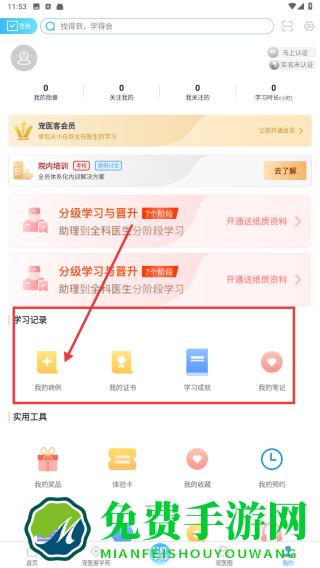 3、进入我的页面,点击我的病例,可添加、管理医学病例,辅助临床学习与经验积累,提升医术句号。