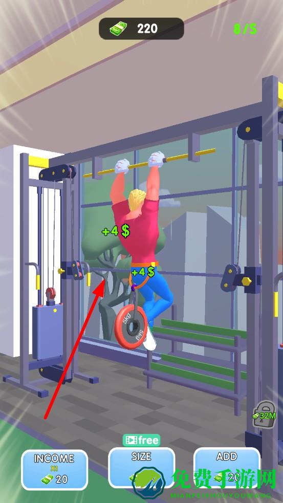 3、,用金币升级引体器材,配重、换防滑杆提升单次收益,解锁哑铃、跑步机等新器械,扩展赚钱渠道。