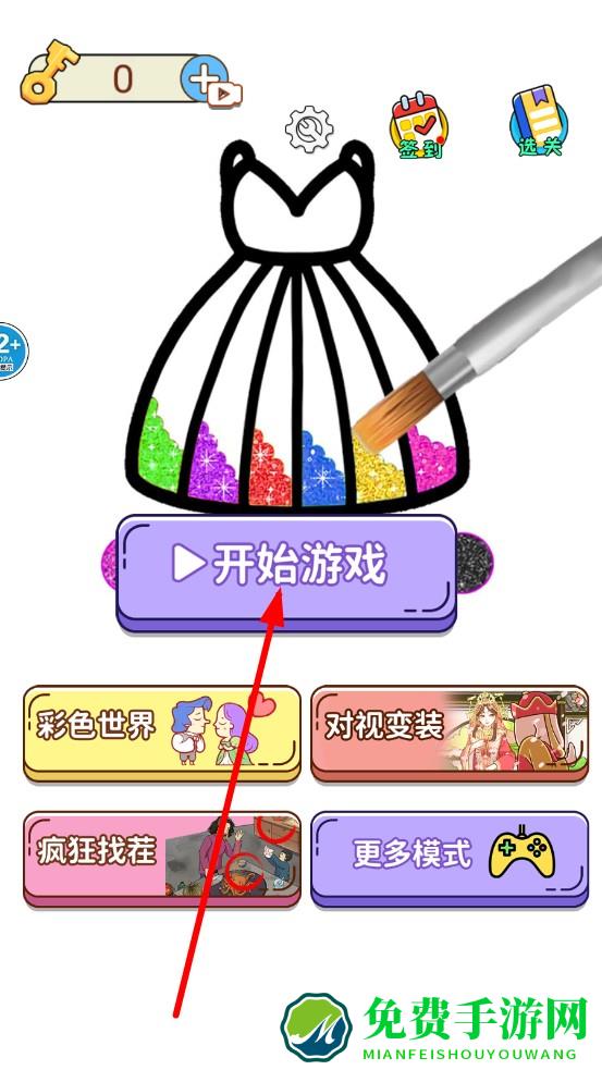 1、主界面点击开始游戏,选择关卡,左侧显示目标图案,观察色彩分布如蓝白条纹、装饰元素数字10,梳理染色顺序。