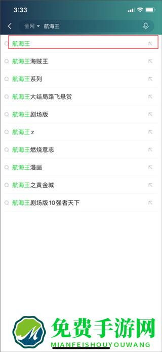 2、当然,用户也可以点击上方的搜索栏来寻找想要看的电视剧,如输入航海王三个字,就会出现一系列与之相关的关键字,点击你所需要的即可。