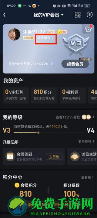 3、接着来到我的VIP会员的页面中我们点击【续费管理】;