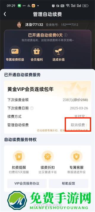 4、进入到管理自动续费的页面中我们点击【取消续费】按钮;