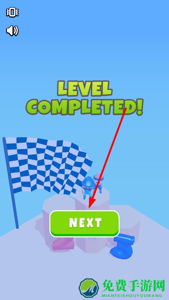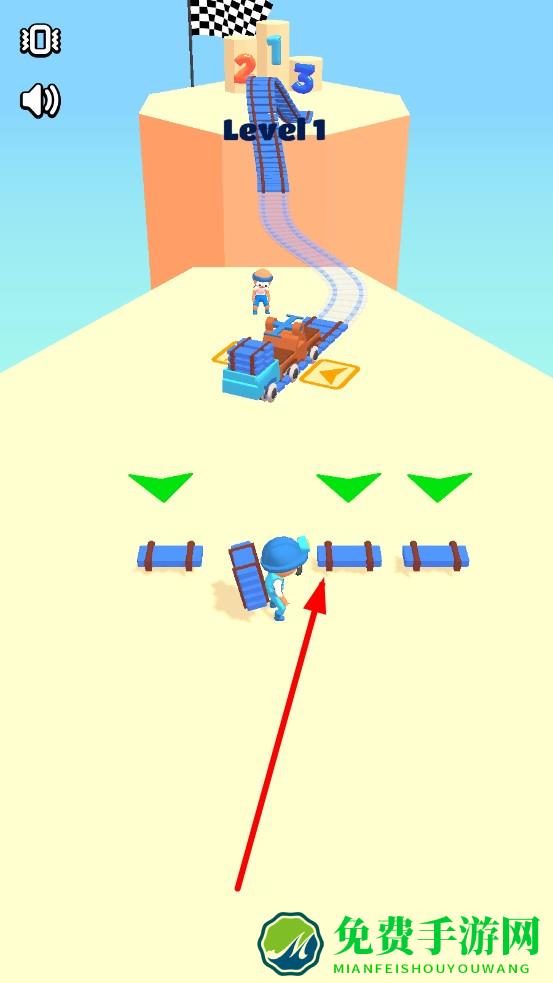 3、轨道成型后点击启动,小车沿轨道冲刺,优先到达终点触发LEVEL COMPLETED,进入下一关。